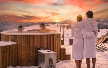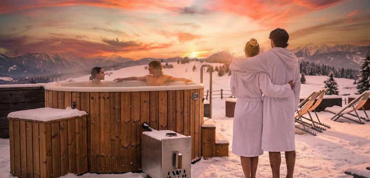 Entspannung unter freiem Himmel. Genießen Sie die Wärme in unserer Fasssauna mit Holzofen und im 40°C warmen Outdoor-Jacuzzi. Drinnen warten Finnische Sauna, Infrarot und ein Zirben-Ruheraum mit Panoramafenster auf Sie – Erholung pur auf 1.940 Metern.