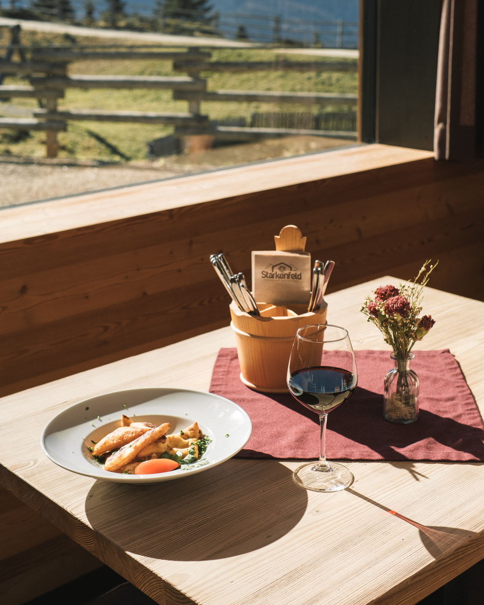 Bei uns auf der Starkenfeld Hütte in Südtirol genießt ihr feine, frische Speisen und tiefen Schlaf auf dem sonnigen Hochplateau.