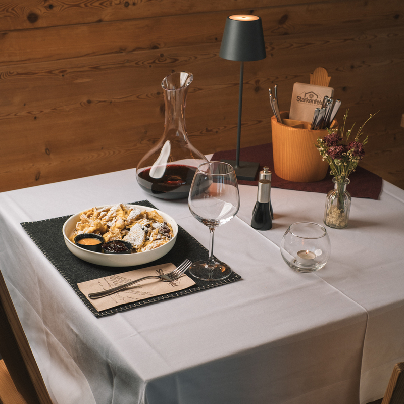 In unserer Küche trifft die Bodenständigkeit der Alm auf moderne Raffinesse. Unser Motto lautet „Innovative Tradition“: Wir bewahren alte Südtiroler Rezepte, interpretieren sie aber neu und leicht.